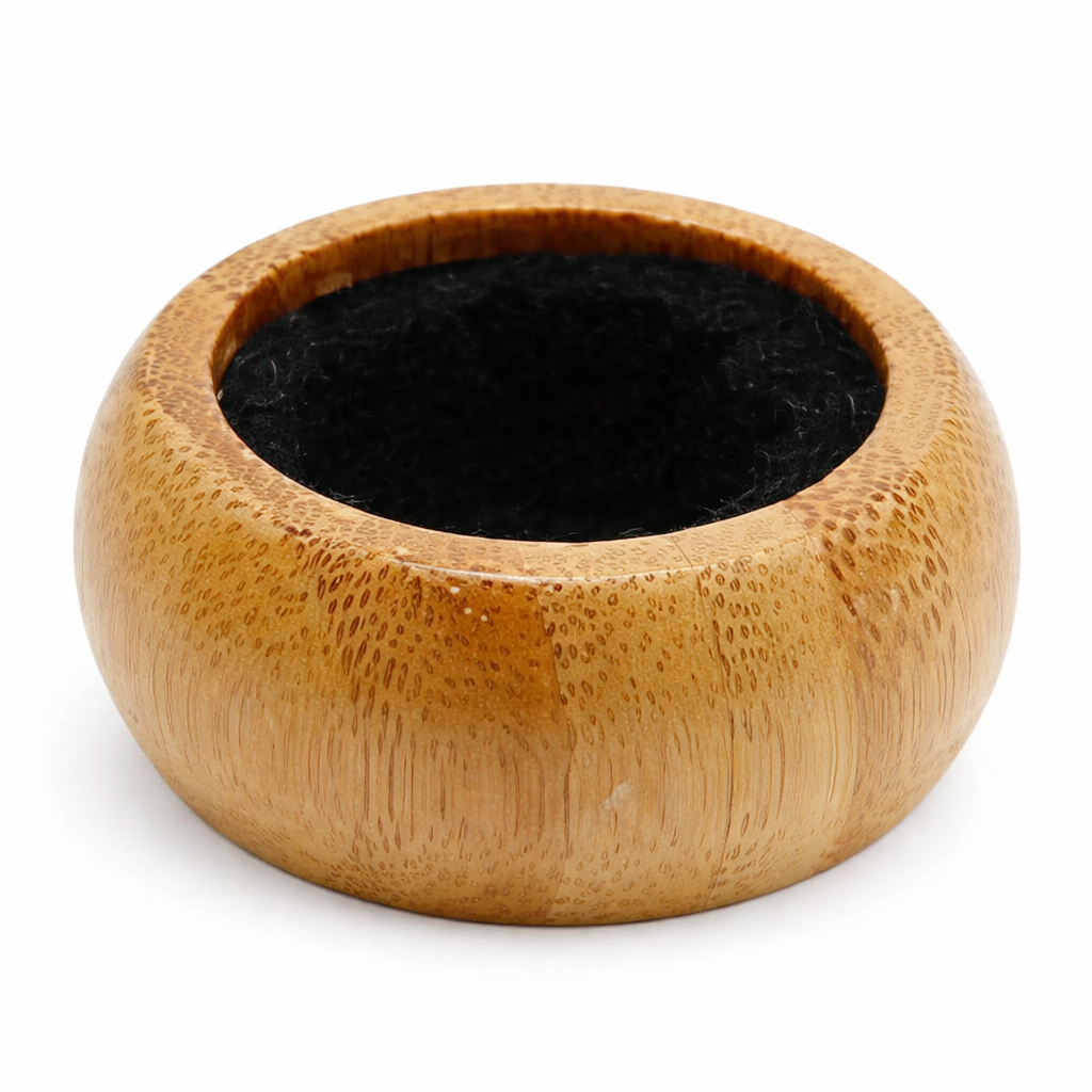 Ontdek de Boeste® bamboe wijnring met zwart flocking-interieur: de perfecte combinatie van natuurlijke elegantie en zachte bescherming voor al uw ringen en sieraden.
